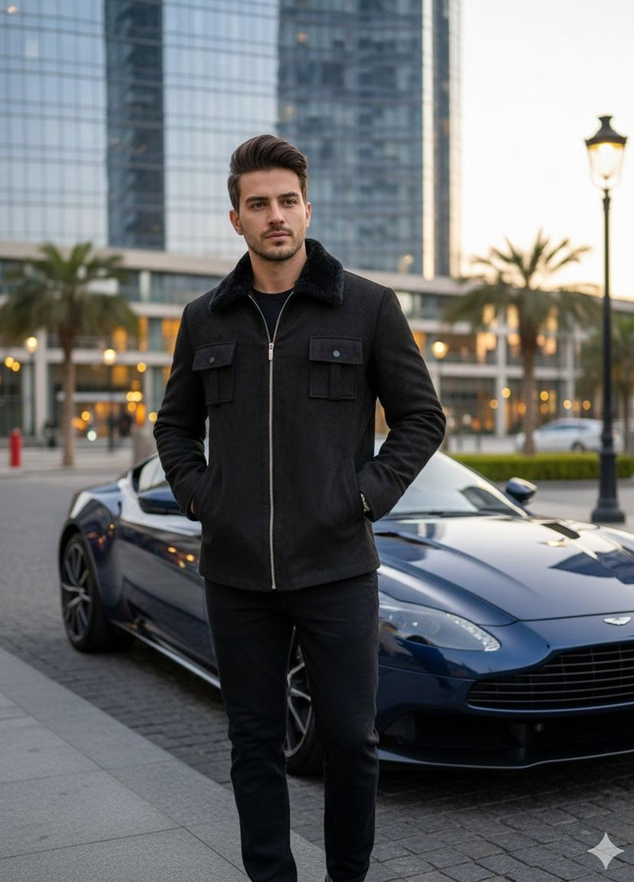Step into effortless sophistication with the Black Suede Zipper Jacket from The Nawabs Clothing. Designed for the modern man who values refined style and premium craftsmanship, this jacket is a perfect blend of luxury and everyday versatility.