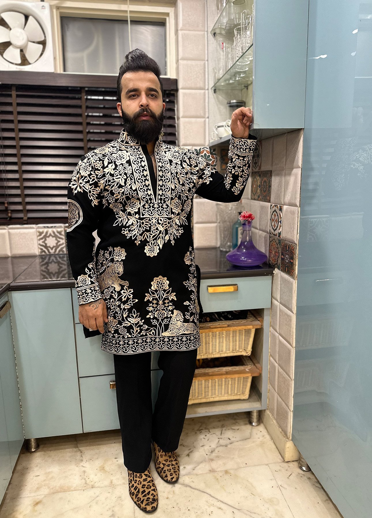 Pair it with classic churidar pants or straight trousers, traditional mojris, or contemporary loafers to complete a look that is timeless, regal, and effortlessly stylish.