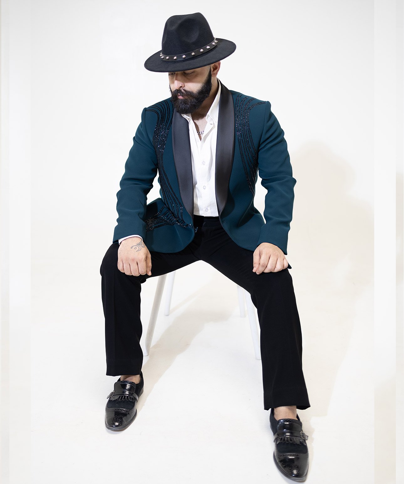 Own the Teal Green with Black Embroidered Tuxedo Set—and redefine modern luxury.