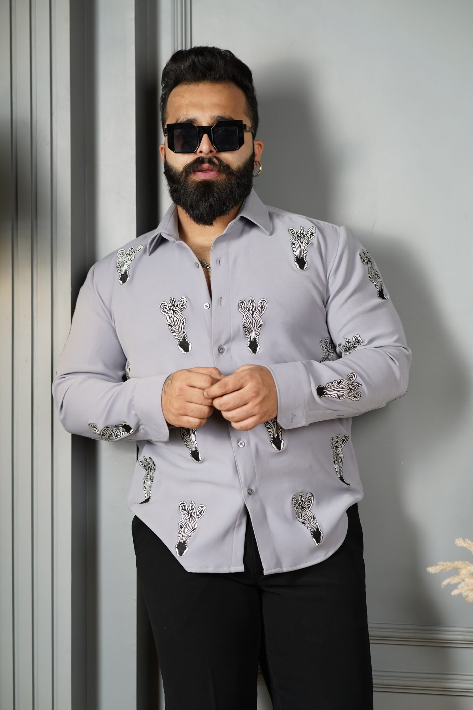 Express your wild side with elegance—own the Grey Zebra Shirt today.