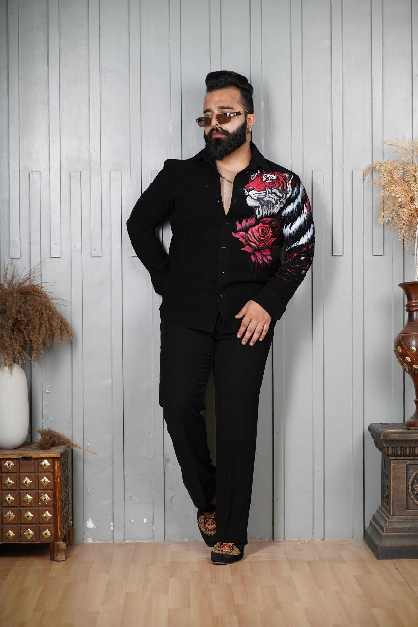 At The Nawabs Clothing, we combine fashion with artistry, creating apparel that defines personality and elegance. The Red Tiger Hand Painted Shirt is a perfect reflection of this vision—exclusive, stylish, and unforgettable.